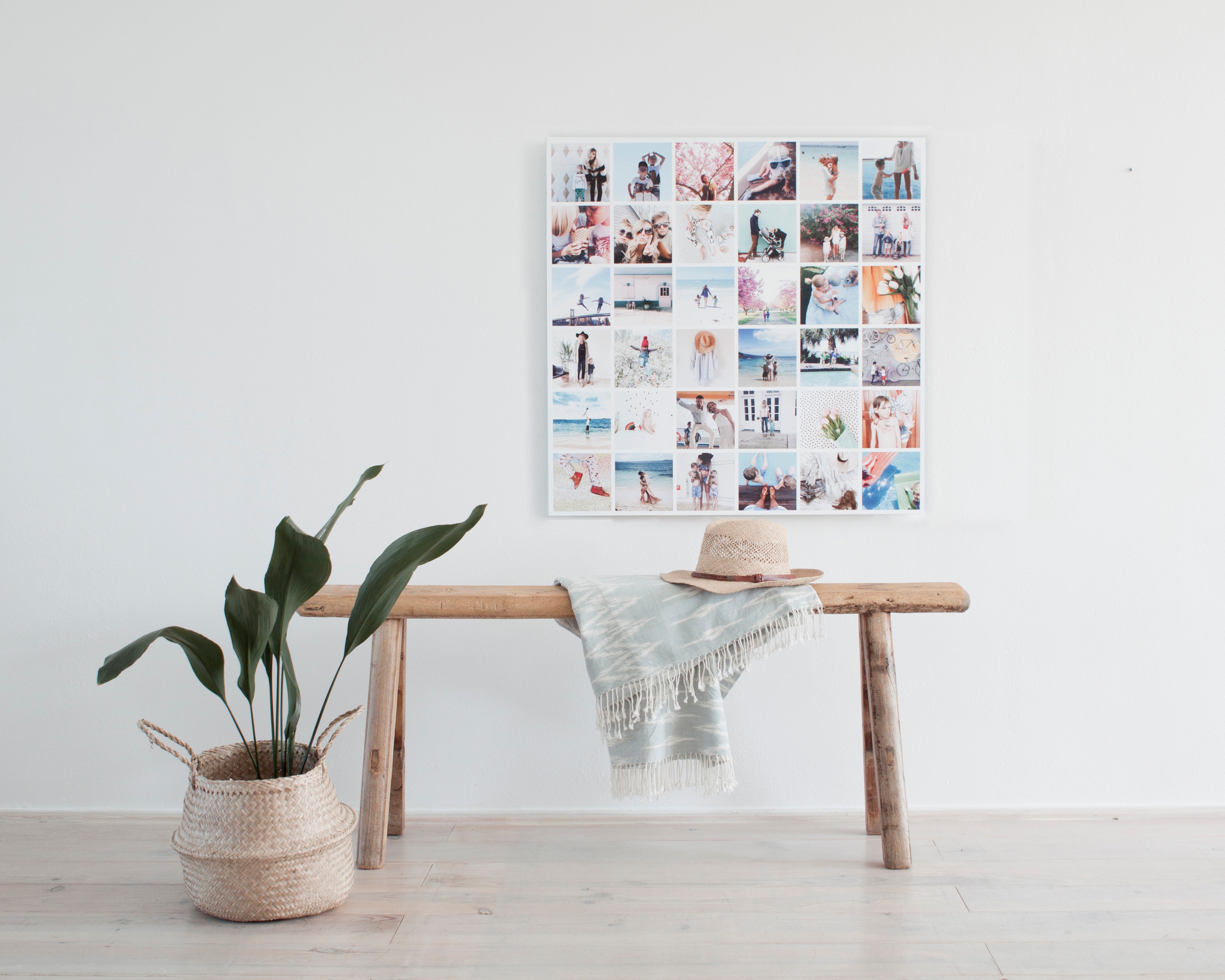 Schmale Wand? Dann wähle eine vertikale Instawall. Hänge sie etwa 145 cm vom Boden bis zur Mitte deiner Dekoration auf. Verwendest du mehrere kleine Instawalls, halte 5–15 cm Abstand zwischen ihnen für einen eleganten Look.
