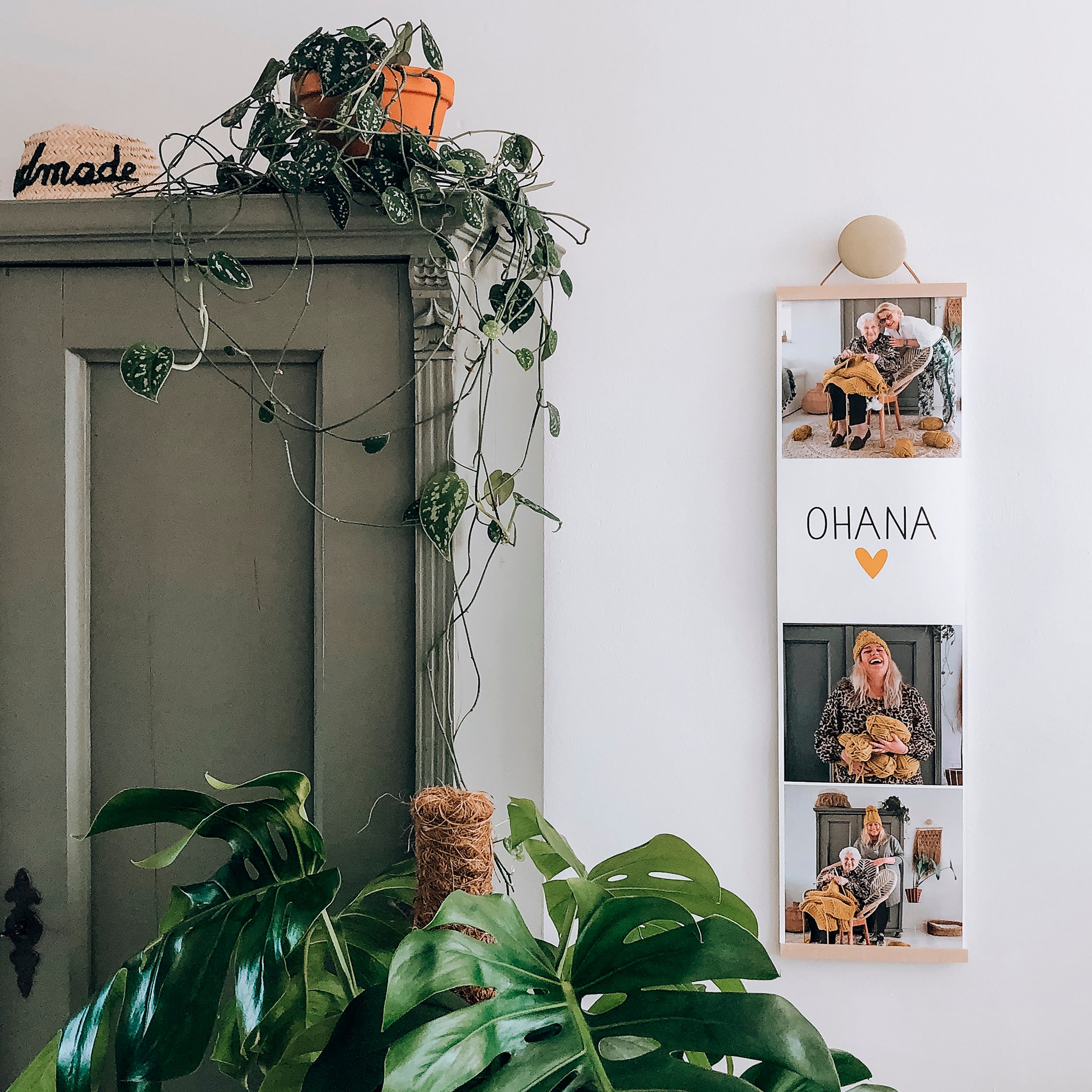 Dank der 25 cm langen Holzaufhängung lässt sich der Foto-Streifen mühelos an der Wand anbringen. Unsere Poster werden mit einem