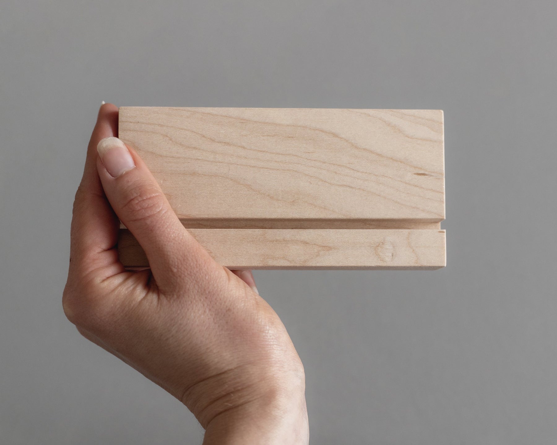 Unser Fotoständer aus Holz besteht aus massivem, FSC-zertifiziertem Ahornholz aus Skandinavien. Jedes Stück wird in den Niederlanden handgefertigt – mit Liebe zum Detail und handwerklichem Können. Die feine Maserung und die weiche Oberfläche verleihen dem Halter einen ruhigen, zeitlosen Look, der sich perfekt in jedes Interieur einfügt.