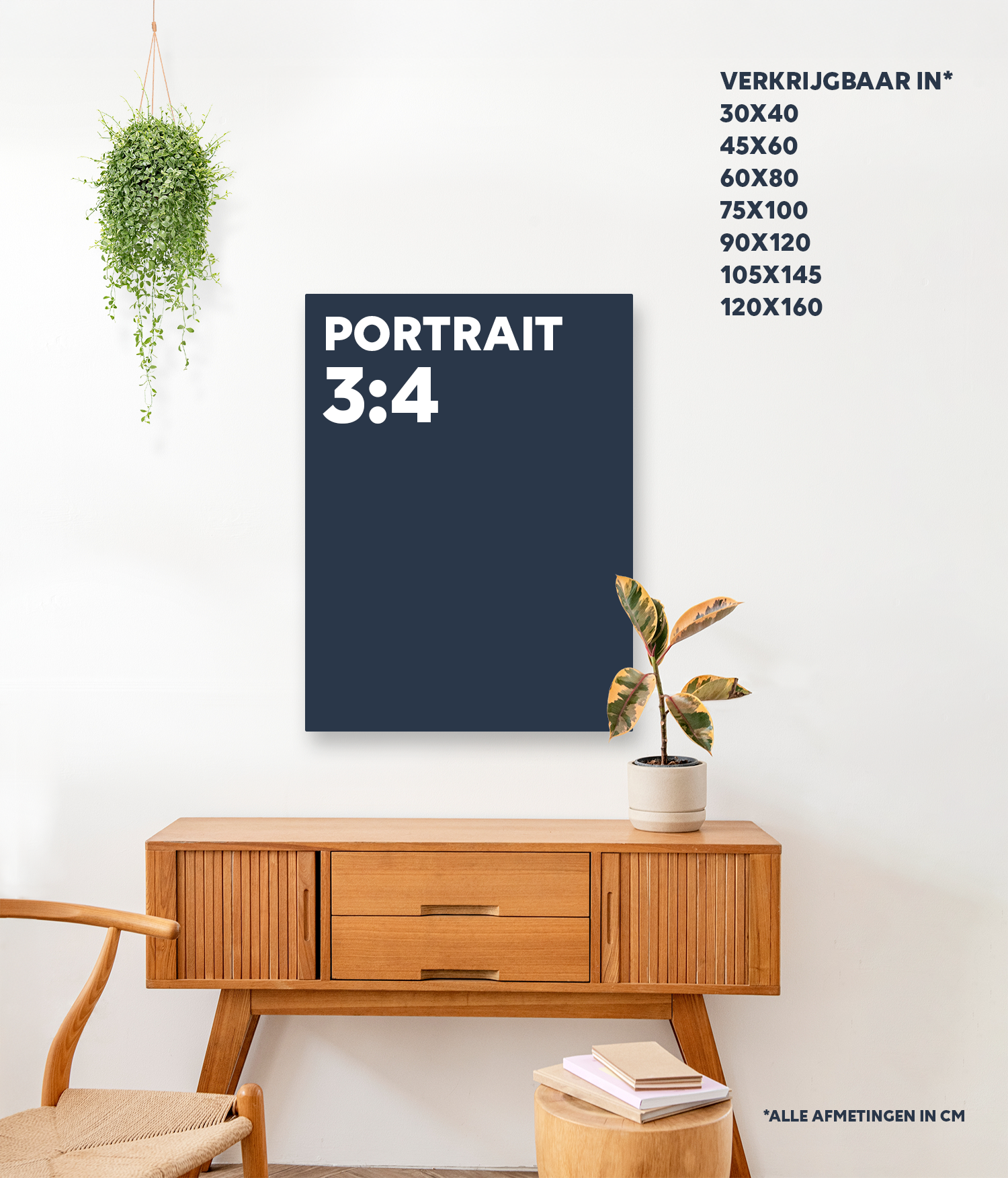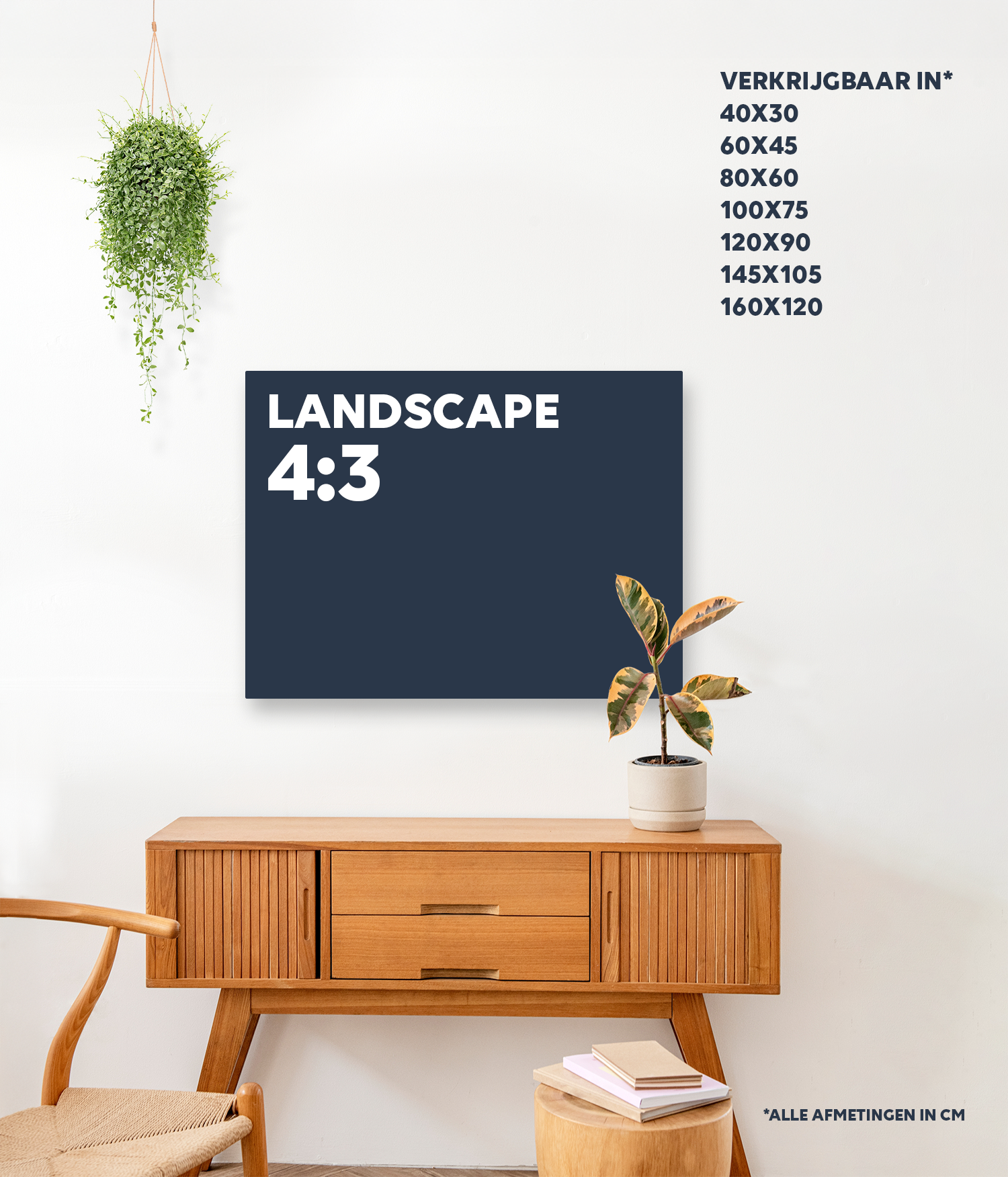 Nutze die 2/3-Regel: Deine Instawall sollte etwa zwei Drittel der Breite deines Sofas haben. Hast du ein 180 cm breites Sofa? Dann wähle eine Instawall mit ca. 120 cm Breite. Hänge sie auf Augenhöhe auf, etwa 20–25 cm über dem Sofa.